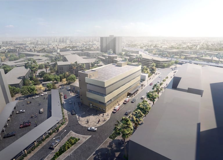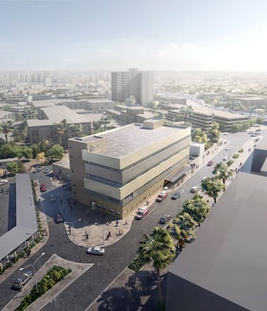 A modern critical care hospital, built with advanced systems and robust construction to support specialized medical services in Baghdad.