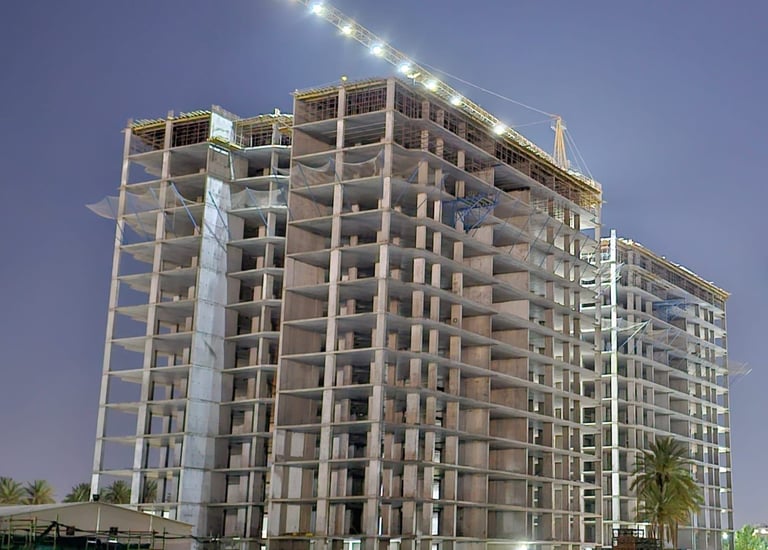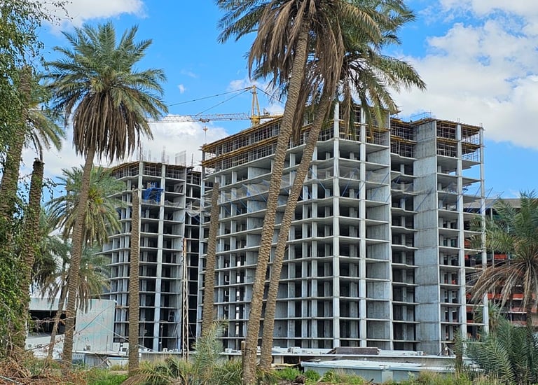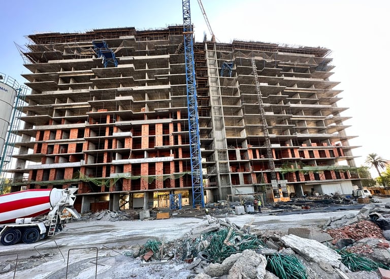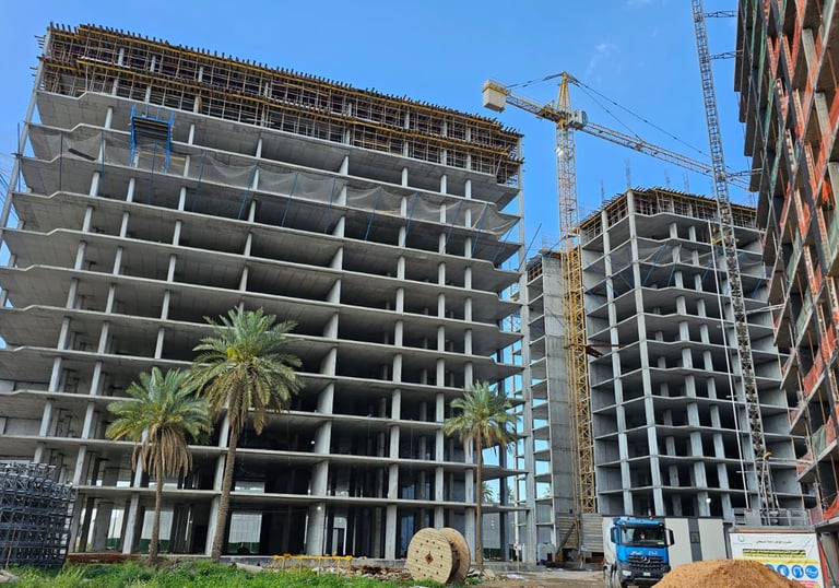 We executed the structural construction for this modern highrise development, comprising three main towers (A2, A3, Blocks). Our work involved building the robust reinforced concrete framework, cores, and slabs, ensuring the highest standards of structural integrity. By delivering a solid and reliable foundation, our work supports the project's goal of redefining urban living in Baghdad.