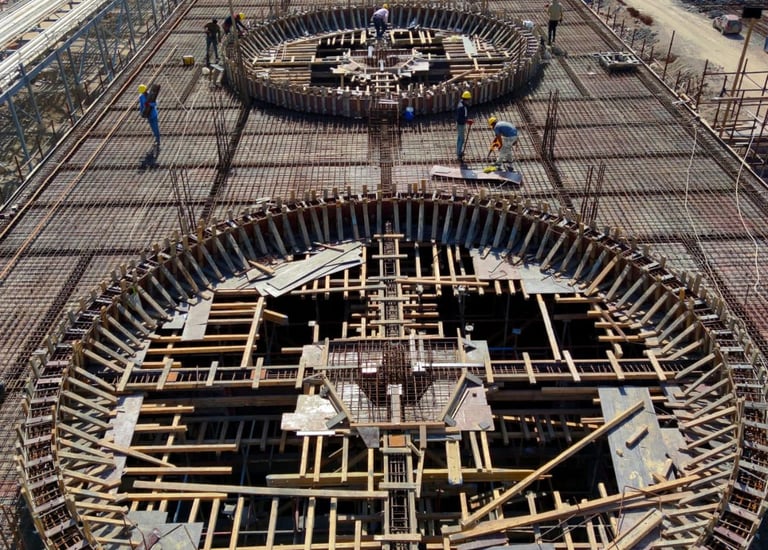 We executed the civil works for the new Mechanical Cooling Towers 4 and 5, focusing on the precision construction of their reinforced concrete foundations and structural supports. Our team ensured the civil infrastructure was built to the highest engineering standards, providing a stable and reliable base for the mechanical systems. This critical support work contributed to enhancing the plant's operational efficiency and the broader energy infrastructure in Basra.